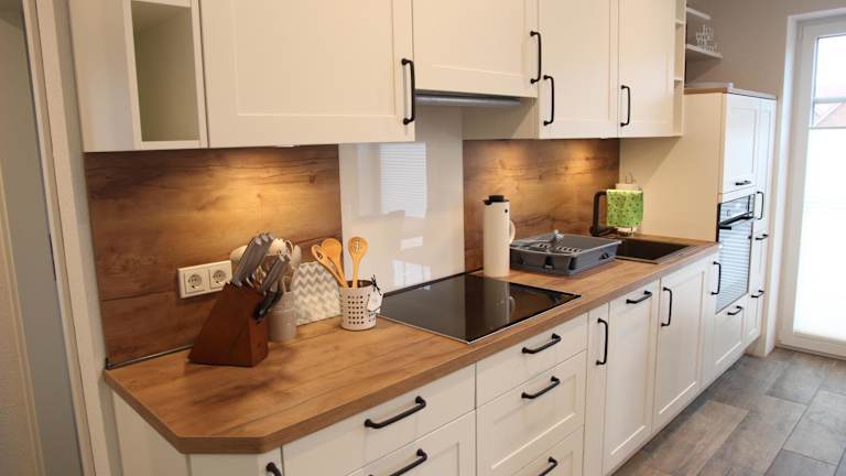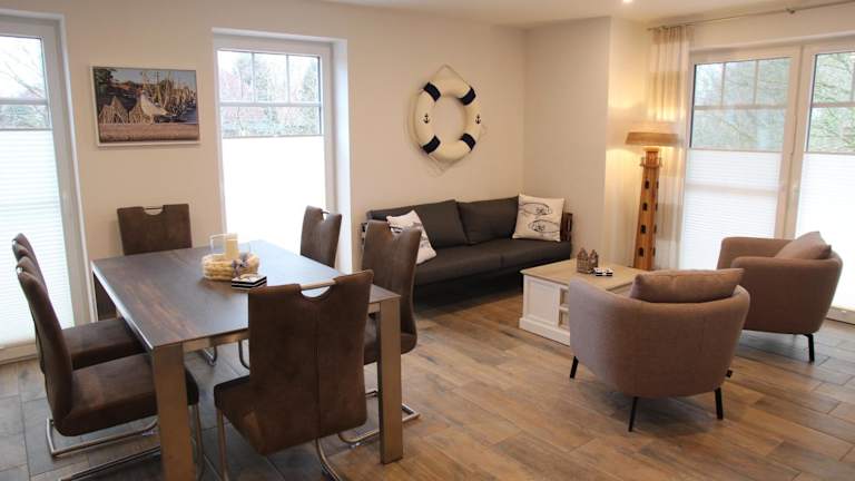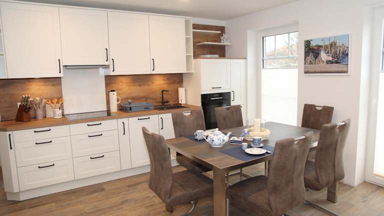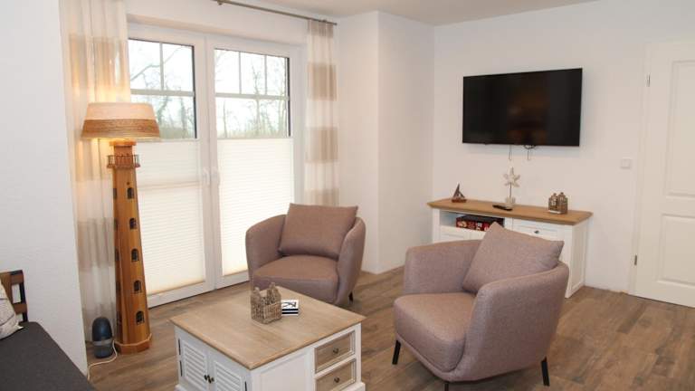 Die Ferienwohnung befindet sich im Erdgeschoss und ist mit 2 Schlafzimmern ausgestattet. Zudem gibt es einen TV und eine voll ausgestattete Küche, die über einen Kühlschrank, einen Geschirrspüler, eine Waschmaschine, einen Ofen sowie eine Mikrowelle verfügt.