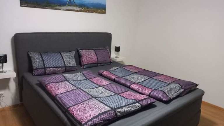 Die Ferienwohnung verfügt über ein Schlafzimmer, ein Wohnzimmer mit Flachbild-TV, eine gut ausgestattete Küche mit Kühlschrank und Geschirrspüler sowie ein Badezimmer mit Dusche. Eine Terrasse mit Bergblick lädt zum Entspannen ein. Bettwäsche und Handtücher werden bereitgestellt.