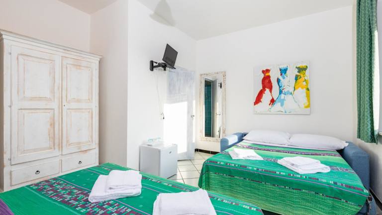 Die Zimmer im Helios Hotel sind mit einer Klimaanlage, einem Safe sowie einem Flachbild-TV ausgestattet. Einige Zimmer bieten zusätzlich einen Balkon.