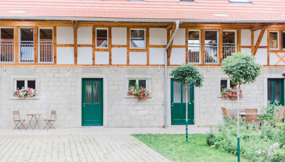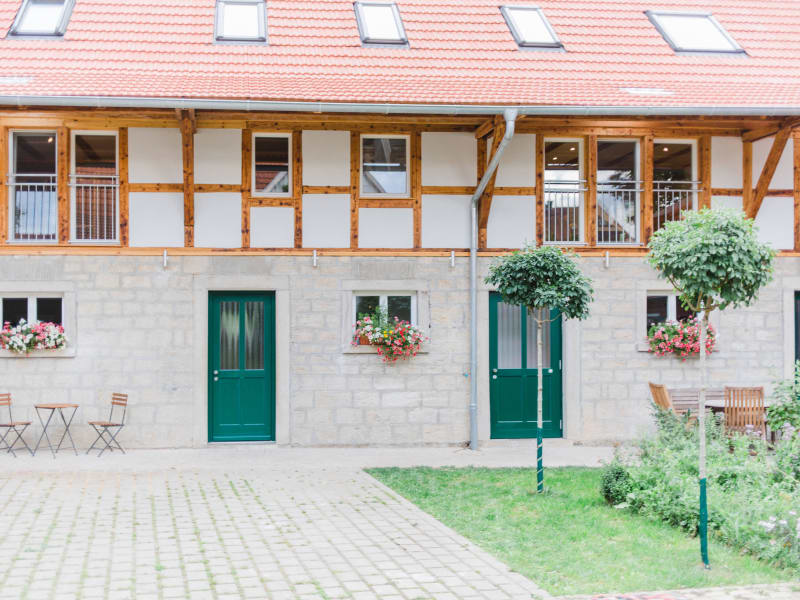 Ankommen und abschalten auf unserer romantisch gelegenen, denkmalgeschützten Fachwerkhofstelle. Die ökologische Bauweise unseres 2016 komplett renovierten Gebäudes sorgt für das gesunde Leben in unseren Wohnungen. Nur heimische Hölzer vom Schreiner aus der Region werden zu individuellen Massivholzmöbeln verarbeitet. Wenn Sie Ruhe und Entspannung suchen, wunderschöne Räume, Wandern, Radfahren oder ein sonniges Frühstück in unserem Frühstücksraum, im grünen Hof oder im großzügigen Garten mit vielen Sitzplätzen erleben möchten kommen Sie zu uns auf den Hellbachhof. Fühlen Sie sich aufgehoben und genießen Sie nach der Betriebsamkeit des Alltags die Ruhe und die familiäre Atmosphäre. Unsere komfortablen und vollausgestatteten Nichtraucher-Ferienwohnungen in gehobener Ausstattung unterstützen Sie dabei. Und dann: Zeit haben für das Wesentliche!
