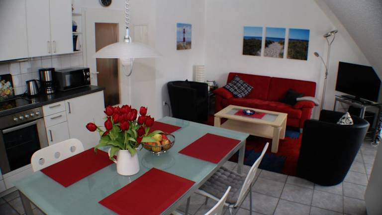 Die Ferienwohnung besteht aus 2 Schlafzimmern, einem Wohnzimmer und einer voll ausgestatteten Küche mit Kühlschrank und Kaffeemaschine. Es stehen 2 Badezimmer mit Dusche und Haartrockner zur Verfügung. Zur Unterhaltung gibt es einen Flachbild-TV mit Satellitenkanälen und einen CD-Player.