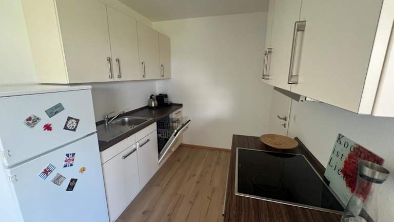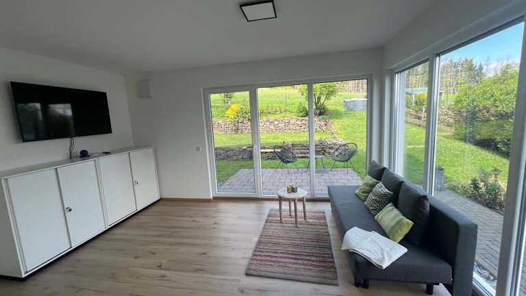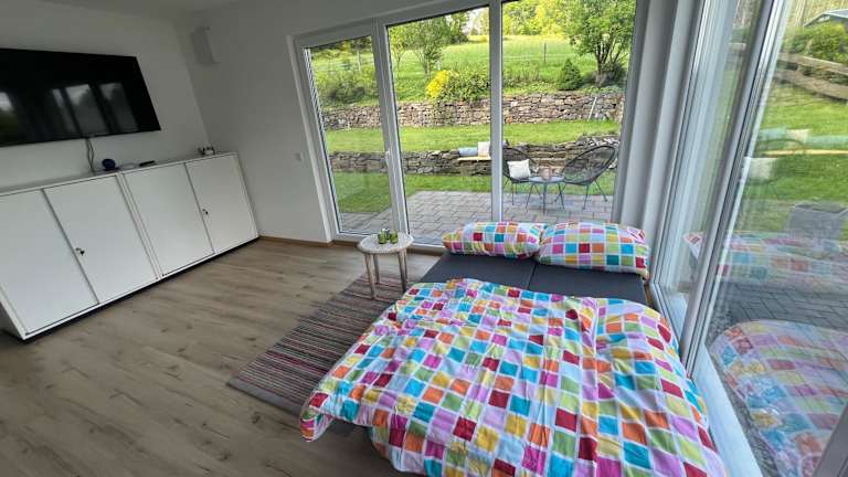 Die Ferienwohnung verfügt über ein Schlafzimmer, ein Wohnzimmer mit Flachbild-TV, eine gut ausgestattete Küche mit Kühlschrank und Geschirrspüler sowie ein Badezimmer mit Dusche. Handtücher und Bettwäsche werden bereitgestellt. Es gibt zudem eine Terrasse mit Gartenblick.