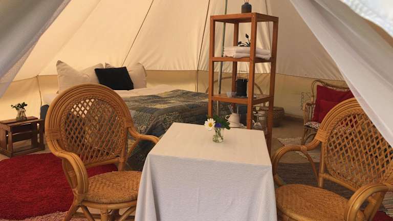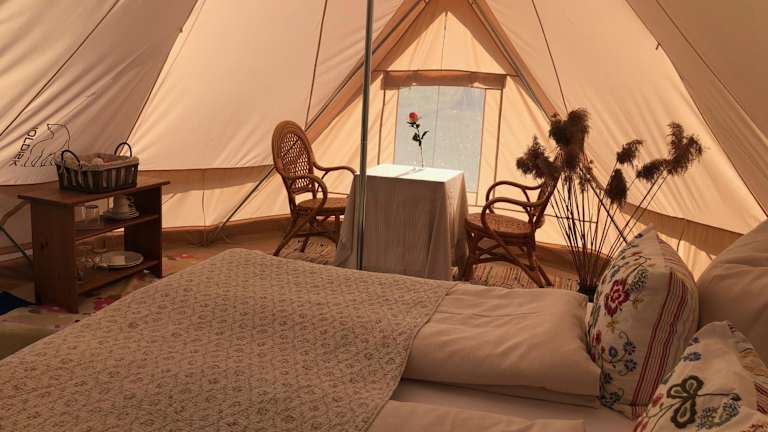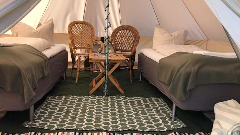 Helles Have Glamping bietet Übernachtungsmöglichkeiten in einem einzigartigen Glamping-Stil. Die Unterkunft ist speziell für Erwachsene konzipiert und erlaubt keine Feierlichkeiten wie Junggesellenabschiede. Es gilt ein Mindestalter von 18 Jahren für den Check-in sowie für die Gäste.
