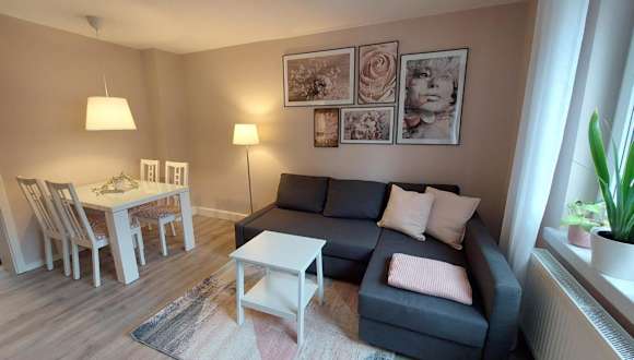 Die Ferienwohnung besteht aus 1 Schlafzimmer, einem Wohnzimmer sowie einer voll ausgestatteten Küche mit Kühlschrank und Kaffeemaschine. Das Badezimmer ist mit einer Dusche und einem Haartrockner ausgestattet. Zur Unterhaltung gibt es einen Flachbild-TV mit Kabelkanälen und einen Blu-ray-Player.
