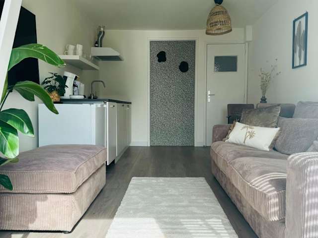 Die Ferienwohnung umfasst ein Schlafzimmer und ist mit einer Küchenzeile ausgestattet, die über einen Kühlschrank und Geschirrspüler verfügt. Zudem ist ein Flachbild-TV und ein gemütlicher Sitzbereich vorhanden. Das Badezimmer ist mit einer Dusche ausgestattet. Handtücher und Bettwäsche werden bereitgestellt.