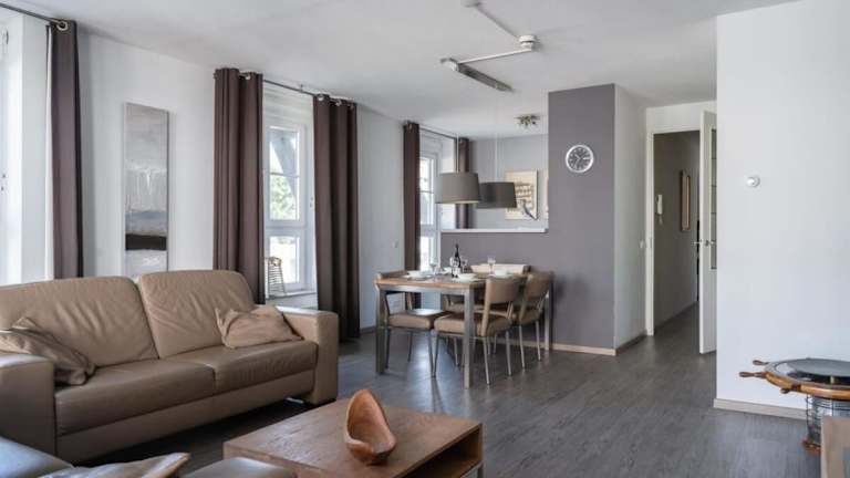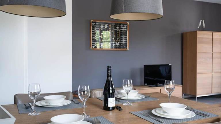 Die Ferienwohnung beinhaltet zwei Schlafzimmer und ist ausgestattet mit einem TV mit Kabelkanälen. Zudem bietet die voll ausgestattete Küche Annehmlichkeiten wie einen Kühlschrank, einen Geschirrspüler, eine Waschmaschine, einen Ofen sowie eine Mikrowelle. Die umfassende Ausstattung sorgt für eine angenehme Selbstversorgung.