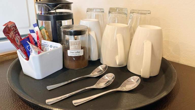 Es besteht die Möglichkeit, Frühstück im Zimmer zu haben oder Essenslieferungen in die Unterkunft zu erhalten. Ein Kaffeee befindet sich vor Ort, und Grillmöglichkeiten sind ebenfalls vorhanden.
