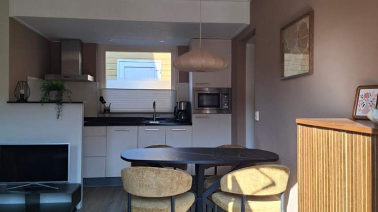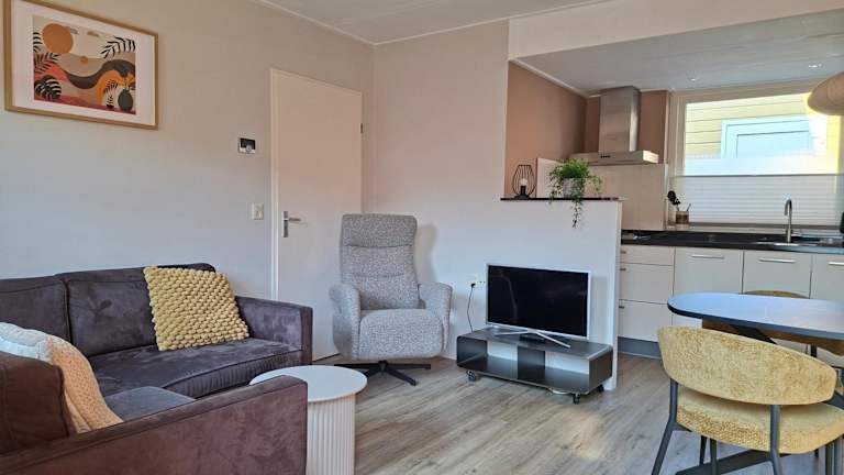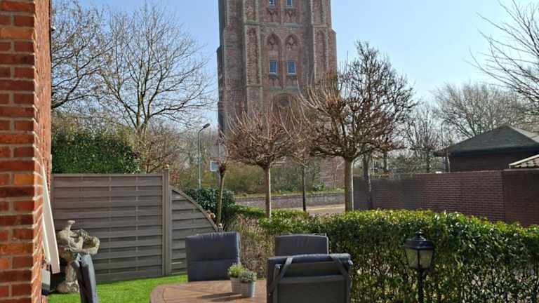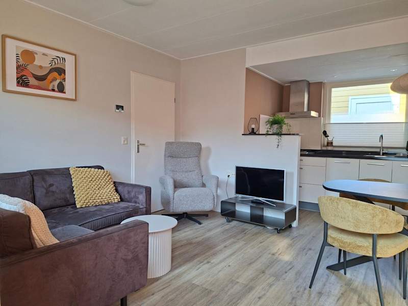 Hendrikhof - vakantiewoning Noordkerkepad 5 ist eine Ferienwohnung mit einer Terrasse und Gartenblick, die eine gemütliche Atmosphäre ausstrahlt.