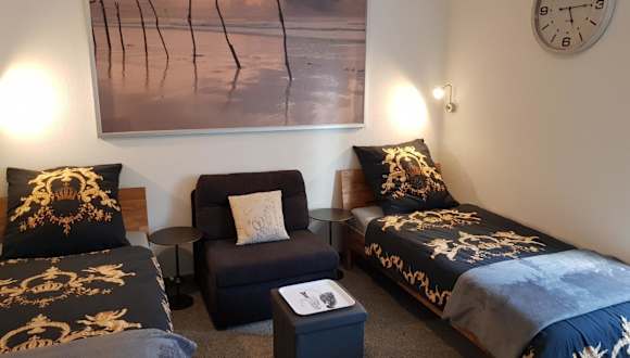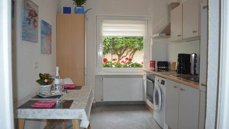 Diese Ferienwohnung verfügt über ein Schlafzimmer, einen Flachbild-TV mit Kabelkanälen, eine gut ausgestattete Küche mit Kühlschrank und Ofen sowie ein Badezimmer mit Dusche. Handtücher und Bettwäsche werden zur Verfügung gestellt.
