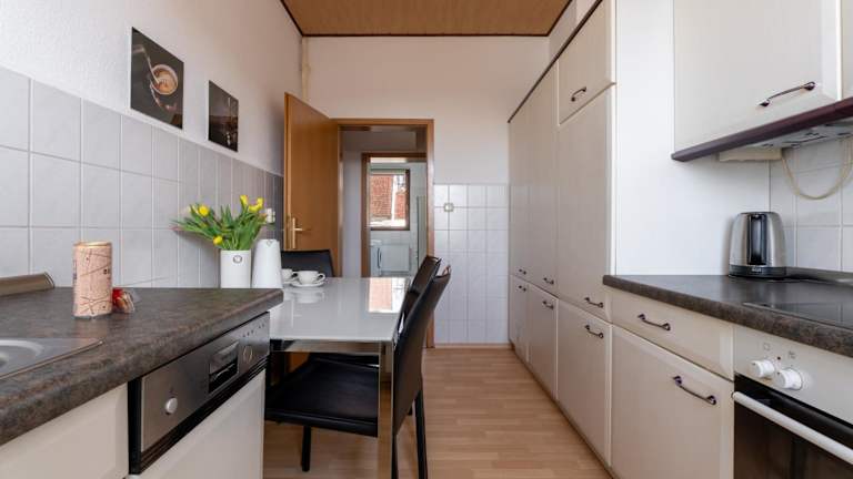 Die Ferienwohnung verfügt über zwei Schlafzimmer und ist mit einem Flachbild-TV sowie einer voll ausgestatteten Küche ausgestattet. Die Küche umfasst einen Kühlschrank, einen Geschirrspüler, eine Waschmaschine, einen Ofen und eine Mikrowelle. Die Unterkunft ist als Nichtraucherunterkunft geführt.