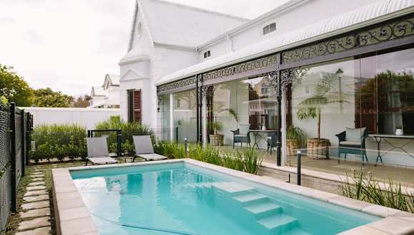 Die Unterkunft Heritage House liegt in Stellenbosch, nur 700 m von der Universität Stellenbosch entfernt. In der Umgebung befinden sich das Jonkershoek Nature Reserve, welches 8,6 km entfernt ist, sowie die Golfplätze Heidelberg Golf Club (18 km) und Boschenmeer Golf Course (31 km). Der nächstgelegene Flughafen ist der Flughafen Kapstadt, der sich 25 km von der Unterkunft entfernt befindet.