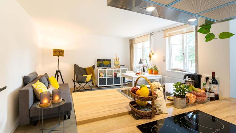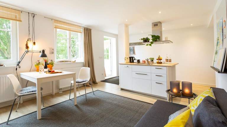 Die Herthaquelle Wohnung 1 "Studio H" bietet heimelige Übernachtungsmöglichkeiten in einer Ferienwohnung mit einem Schlafzimmer. Die Unterkunft hat einen Garten und umfasst einen kostenlosen Privatparkplatz. Es werden keine Junggesellen- oder Junggesellinnenabschiede oder ähnliche Feierlichkeiten erlaubt. Der Mindestalter für den Check-in liegt bei 18 Jahren.