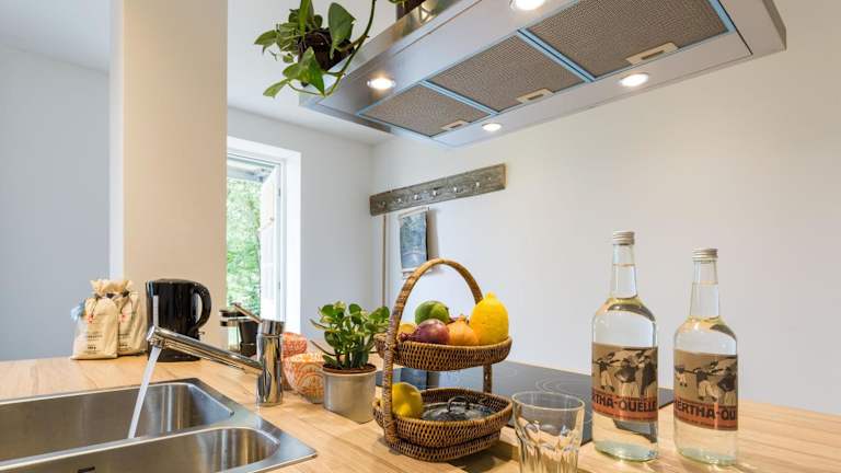 Die Ferienwohnung enthält eine gut ausgestattete Küche mit Kühlschrank und Geschirrspüler, was die Zubereitung eigener Mahlzeiten ermöglicht. Es sind keine Verpflegungsmöglichkeiten vor Ort angegeben.