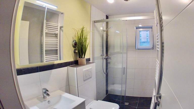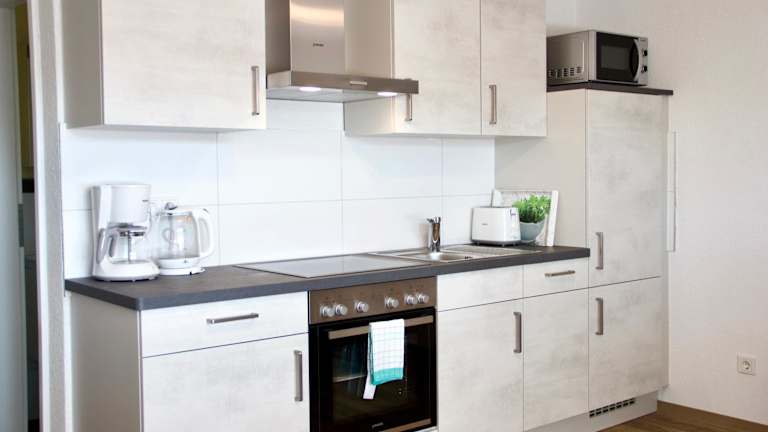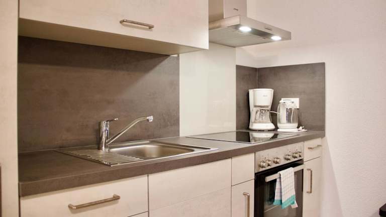 Die Wohneinheiten verfügen über eine voll ausgestattete Küche mit Kühlschrank, Geschirrspüler, Ofen, Mikrowelle, Kaffeemaschine und Wasserkocher. Ein Essbereich, ein Flachbild-TV mit Kabelkanälen sowie ein eigenes Badezimmer mit Dusche und Haartrockner sind ebenfalls vorhanden. Die Studios bieten Bequemlichkeit und Funktionalität für längere Aufenthalte.