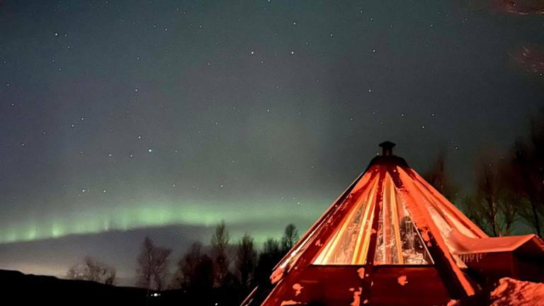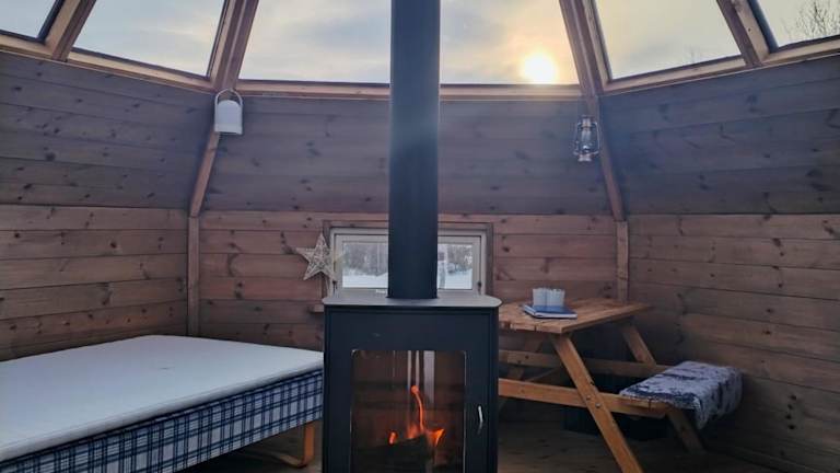 Im Hessdalen Ufocamp übernachten Sie in gemütlichen Zelten aus Holz und Glas. Die Zelte sind mit Rentierfellen und einem Kamin ausgestattet, der für wohlige Wärme sorgt. Hier können Sie sich nach einem ereignisreichen Tag in der Natur entspannen und die romantische Atmosphäre genießen. Die Zelte bieten Ihnen ein einzigartiges Naturerlebnis und sind perfekt für Abenteurer und Naturliebhaber geeignet.