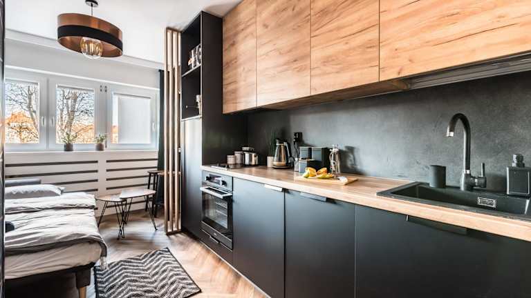 Das Hexagon Studio bietet ein Schlafzimmer, einen Flachbild-TV mit Satellitenkanälen, eine gut ausgestattete Küchenzeile mit Kühlschrank und Geschirrspüler sowie ein Badezimmer mit Dusche. Handtücher und Bettwäsche werden bereitgestellt.