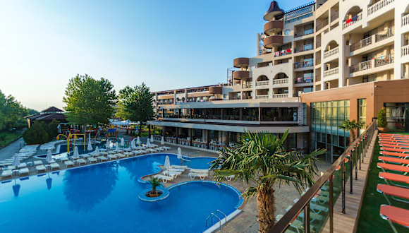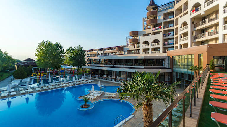 Die kinder-und familienfreundliche Hotelanlage, bestehend aus den Hauesern Imperial Sands und Imperial Beach, ist nur durch die Duenenlandschaft vom flachabfallenden und feinsandigen Strand getrennt. Das Resort liegt in der ruhigen Zone von Sonnenstrand, nur 2 km von der historischen Altstadt Nessebar entfernt. Das Zentrum von Sonnenstrand mit Einkaufs-und Unterhaltungsmoeglichkeiten ist mit Bus oder Bimmelbahn gut zu erreichen.