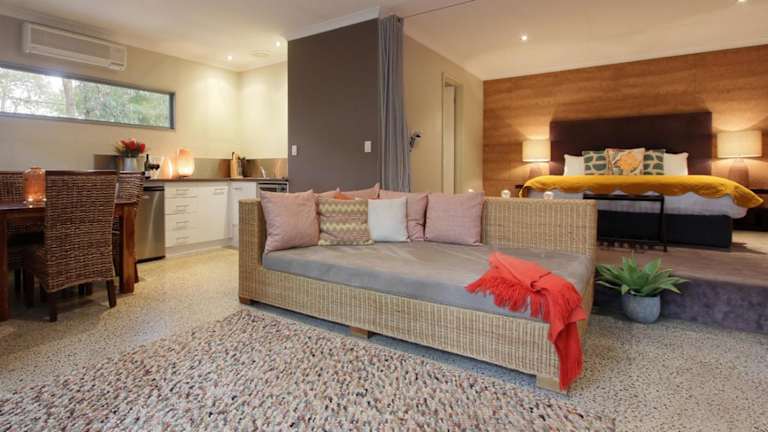 Die Unterkunft Hidden Valley Eco Spa Lodges & Day Spa befindet sich in der Region Western Australia in Pickering Brook, umgeben von einer idyllischen Naturkulisse. Die Entfernung zum Flughafen Perth beträgt 23 km, während Optus-Stadion 27 km und Stadion WACA Ground 29 km entfernt liegt.