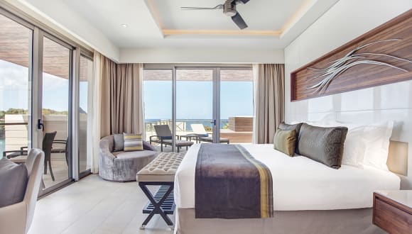 Die Unterkünfte umfassen verschieden Zimmertypen wie die Luxury Junior Suite Swim Out, die über Klimaanlage, Safe, Sitzecke, Kaffee-/Teezubereiter, Minibar, Flatscreen-TV, WLAN ohne Gebühr und eine Terrasse mit direktem Poolzugang verfügen. Jedes Zimmer hat ein eigenes Badezimmer mit Regendusche und Badewanne.