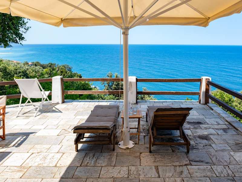 Die Unterkunft befindet sich in Damouchari, direkt am Meer, mit privatem Zugang zu einem eigenen Strandbereich. Nahegelegene Strände wie Strand Papa Nero, Strand Damouchari und Strand Agios Ioannis laden zum Entspannen ein. Die Umgebung bietet zudem diverse Möglichkeiten zum Wandern und Skifahren.
