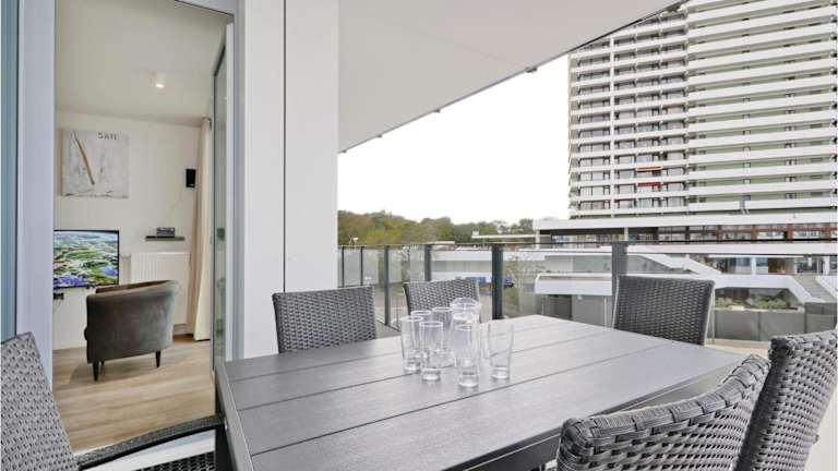 Highend Travemünde - Whg 107 bietet Übernachtungsmöglichkeiten in einer modernen Ferienwohnung, die einen Balkon und kostenlose Parkiermöglichkeiten umfasst. Die Unterkunft liegt in einer ruhigen Gegend und bietet den Gästen Zugang zu einem Garten sowie einer Sauna. Die Wohnung ist für eine erholsame Feriengestaltung optimal geeignet.