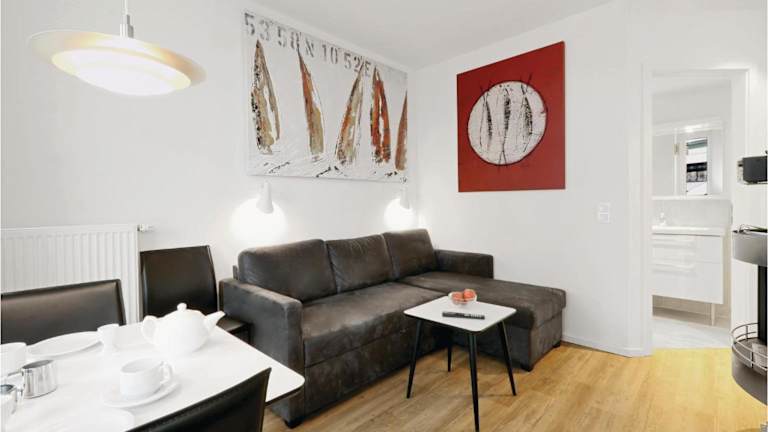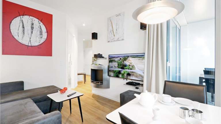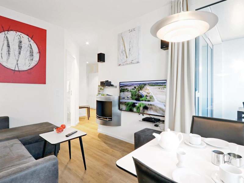 Highend Travemünde - Whg 313 bietet eine gepflegte und moderne Ferienwohnung, die durch umfangreiche Annehmlichkeiten besticht. Diese Nichtraucherunterkunft umfasst einen Garten sowie einen kostenlosen Privatparkplatz, ideal für Gäste, die mit dem Auto anreisen. Damit ist ein ruhiger Aufenthalt garantiert.