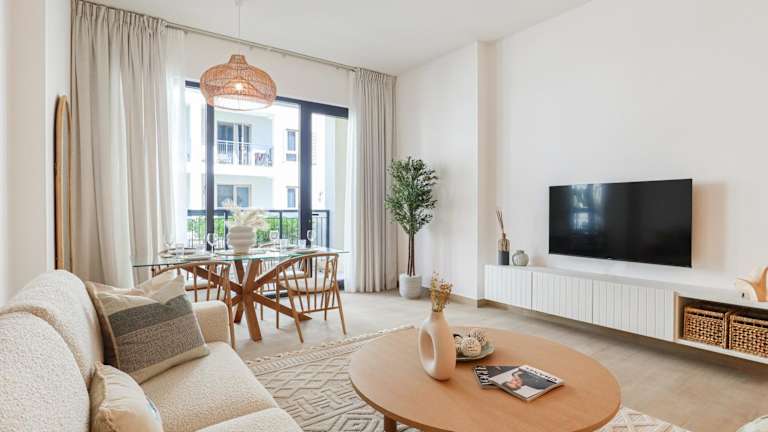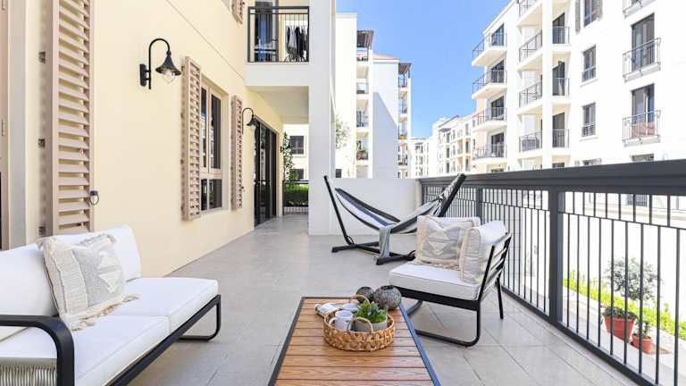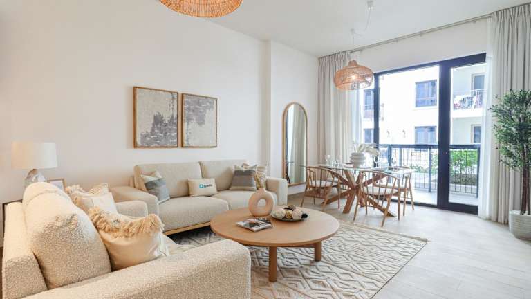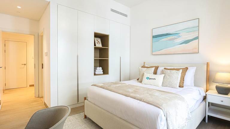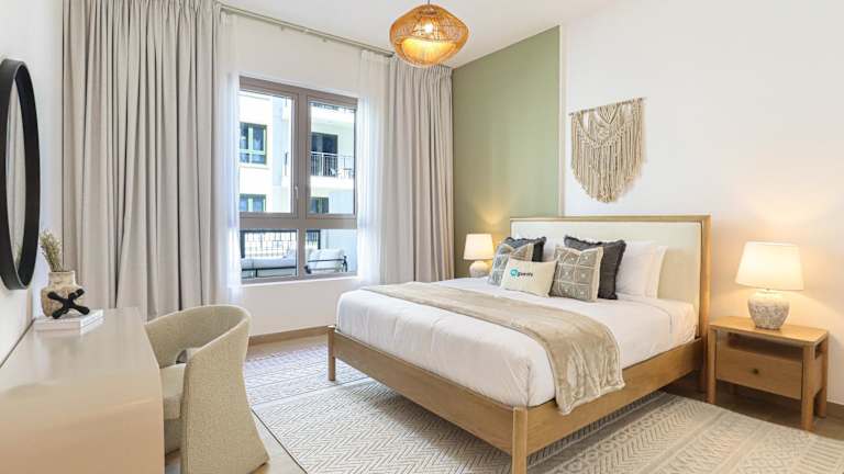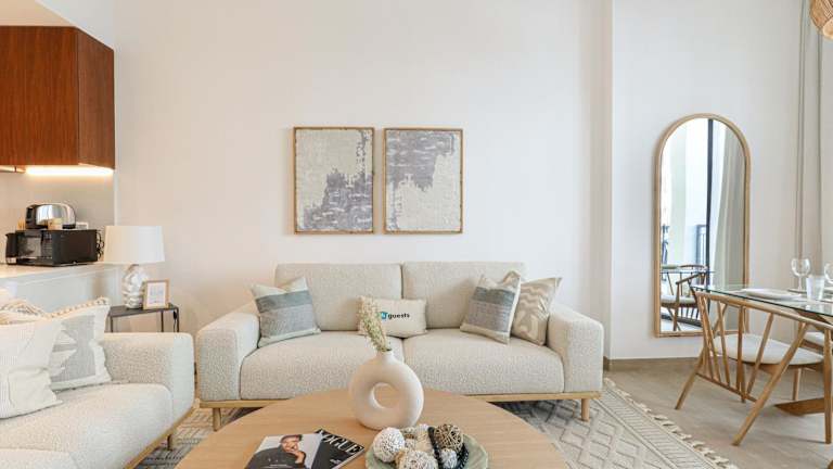 Das HiGuests - Luxurious Boho Beach 2BR Apartment in La Mer bietet Übernachtungsmöglichkeiten mit einem Außenpool, kostenlosem WLAN sowie einem Fitnesscenter. Diese Nichtraucherunterkunft umfasst Familienzimmer und einen Privatparkplatz.