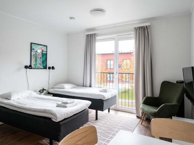 Hiisi Homes Vantaa Kulomäki bietet eine moderne und praktische Unterkunft mit Annehmlichkeiten wie kostenlosem Wifi und einem eigenen Parkplatz. Die Unterkunft ist Nichtraucherzone und erlaubt Haustiere unter bestimmten Bedingungen. Gäste können ihren Aufenthalt durch den kostenlosen Express-Check-in/-out und den kontaktlosen Check-in/-out flexibel gestalten. Die Unterkunft ist so konzipiert, dass die Gesundheit und Sicherheit der Gäste gewährleistet sind, mit strengen Hygienestandards und Behandlung der Zimmer.