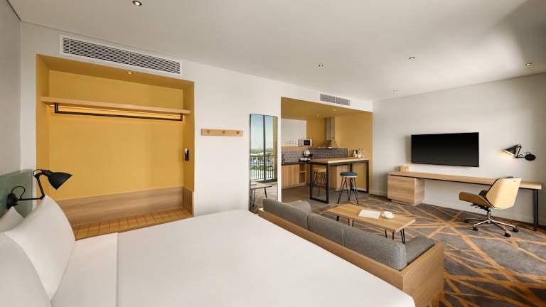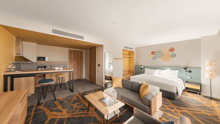 Die Zimmer in der Einrichtung sind modern ausgestattet und verfügen über einen Schreibtisch, Klimaanlage, einen Flachbild-TV sowie ein eigenes Badezimmer mit kostenlosen Pflegeprodukten. Auf Anfrage sind auch Zimmer mit Balkon verfügbar. Bettwäsche und Handtücher sind in allen Zimmern vorhanden.