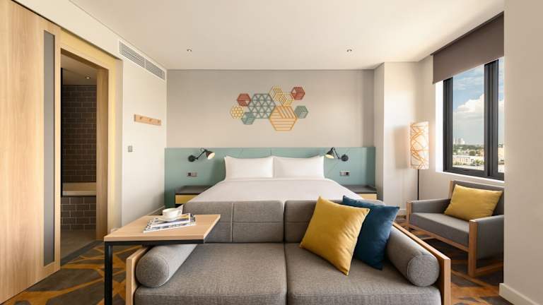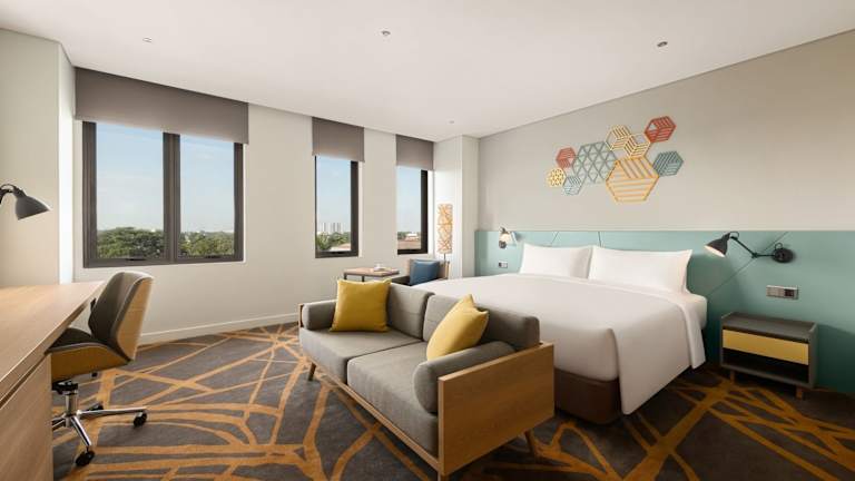 Die Unterkunft HIIVE by fusion Binh Duong - VSIP 1 bietet Übernachtungsmöglichkeiten in einer modernen Umgebung mit verschiedenen Annehmlichkeiten. Zu den Einrichtungen gehören ein kostenloser Privatparkplatz, ein Restaurant sowie eine Bar. Zudem steht den Gästen eine rund um die Uhr besetzte Rezeption zur Verfügung, die für einen angenehmen Aufenthalt sorgt.