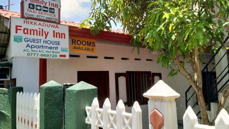 Das Hikkaduwa Family Inn befindet sich in Hikkaduwa, nur 10 m vom Strand Narigama entfernt. Der Strand Hikkaduwa liegt 1,2 km entfernt. Die Umgebung bietet zahlreiche Möglichkeiten, regionale Sehenswürdigkeiten wie das Internationales Kricketstadion Galle, die Niederländische Kirche Galle sowie das Galle Fort zu erkunden, die alle 17 km entfernt sind. Der Leuchtturm Galle ist 18 km entfernt, während der Flughafen Koggala 30 km entfernt liegt.