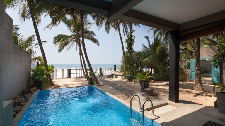 Die Hikks Villa in Hikkaduwa bietet eine ideale Unterkunft für Selbstversorger mit einem Außenpool und kostenfreiem WLAN. Die klimatisierten Zimmer verfügen über eine voll ausgestattete Küchenzeile und einen Balkon mit Meerblick. Genießen Sie die Annehmlichkeiten wie den Grillplatz und die Wassersporteinrichtungen. Der Strand und andere Sehenswürdigkeiten sind bequem zu erreichen. Kostenfreie Parkplätze stehen zur Verfügung.