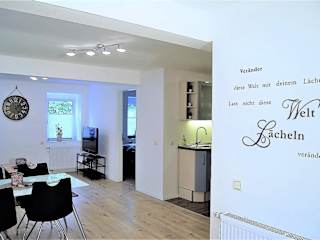Die Ferienwohnung besteht aus einem Schlafzimmer, einem Wohnzimmer und einer voll ausgestatteten Küche mit Kühlschrank und Kaffeemaschine. Ein Badezimmer mit Dusche und Haartrockner ist ebenfalls vorhanden. Handtücher und Bettwäsche werden zur Verfügung gestellt. Die Unterkunft ist rauchfrei und Haustiere sind gestattet.