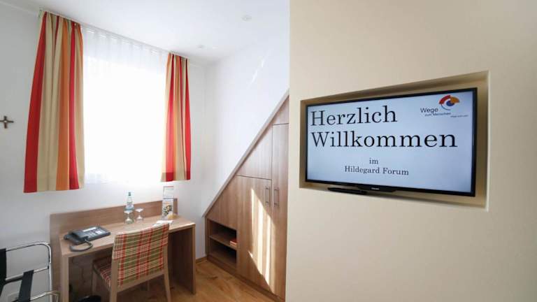 Die Zimmer im Hildegard-Forum sind mit einem Schreibtisch, einem Flachbild-TV, einem eigenen Badezimmer, Bettwäsche und Handtüchern ausgestattet. Zudem verfügen alle Gästezimmer über einen Kleiderschrank. Allergikerfreundliche Zimmer sind ebenfalls verfügbar.