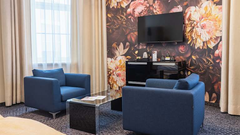 Die Suiten im HiLight Suites Hotel sind geräumig und komfortabel eingerichtet. Jede Suite besteht aus einem separaten Wohnzimmer und einem Schlafzimmer und verfügt über eine regulierbare Klimaanlage. Es gibt auch ein Badezimmer, einen Arbeits- und Ankleidebereich, 2 Telefone, 2 Sat-TVs und eine Minibar. Kostenloses WLAN ist sowohl in allen öffentlichen Bereichen als auch in den Suiten verfügbar, so dass Sie jederzeit mit der Welt in Verbindung bleiben können.