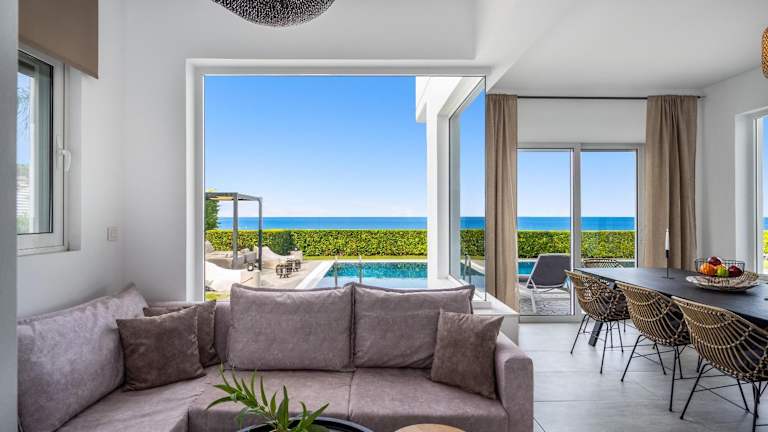 Die Zimmer der Hill & Sea View Villas verfügen über ein Wohnzimmer, eine Küche und ein Badezimmer, ausgestattet mit einem Haartrockner, Dusche und Badewanne. Ein Balkon oder eine Terrasse sind in den meisten Zimmern vorhanden. Der bequeme Schlaf ist auf einem Sofabett sowie in separaten Schlafzimmern möglich. Weitere Annehmlichkeiten sind ein Fernseher, eine Mikrowelle, ein Wasserkocher und eine Spielekonsole. Die Unterbringung bietet Nichtraucherzimmer und die Klimaanlage kann individuell reguliert werden.