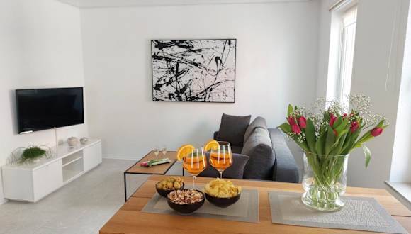 Die Ferienwohnung umfasst 1 Schlafzimmer, ein Wohnzimmer sowie eine voll ausgestattete Küche mit Kühlschrank und Kaffeemaschine. Zudem gibt es 1 Badezimmer mit Dusche und kostenlosen Pflegeprodukten. Handtücher und Bettwäsche werden bereitgestellt.