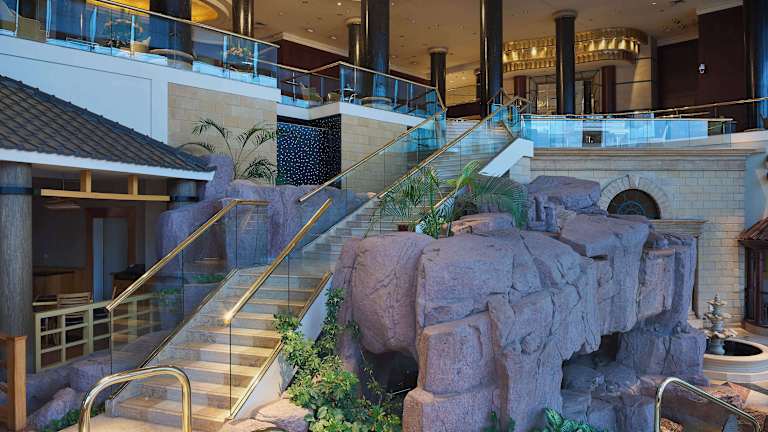 Das Hotel bietet eine Vielzahl von Verpflegungsmöglichkeiten. Im Drehrestaurant werden internationale Gerichte serviert. Zusätzlich finden Gäste japanische, indische und italienische Küche in den verschiedenen Restaurants des Resorts. Auf der hoteleigenen Jacht wird regelmässig Live-Unterhaltung geboten.