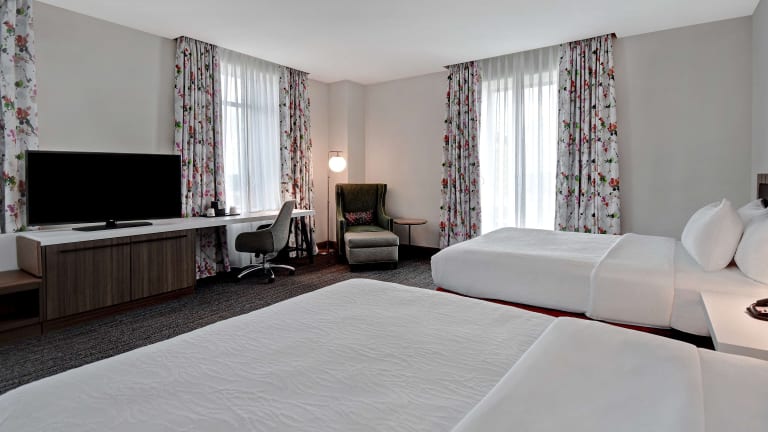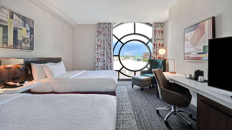 Die Zimmer im Hilton Garden Inn Kalamazoo Downtown sind mit einem Schreibtisch, Klimaanlage, einem Safe und einem Flachbild-TV ausgestattet. Die Gästezimmer bieten eine angenehme Atmosphäre für erholsame Nächte. Die Unterkunft bietet zudem familienfreundliche Zimmer und ist rollstuhlgerecht.
