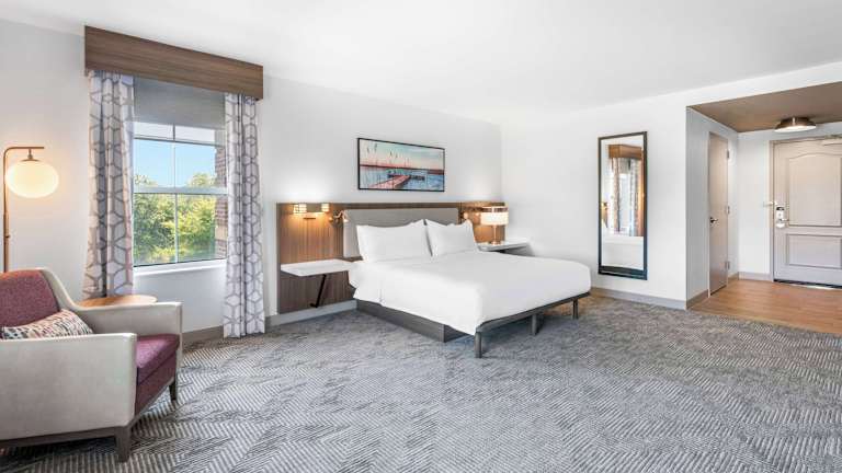 Die Unterkunft Hilton Garden Inn Suffolk Riverfront verfügt über 150 Zimmer in einem fünfstöckigen Gebäude. Zur Ausstattung gehören eine Rezeption, ein Aufzug, eine Gepäckaufbewahrung, ein Safe, ein Geldautomat, ein Zeitungskiosk sowie ein TV-Raum. Die Unterkunft bietet rollstuhlgerechte Annehmlichkeiten und Übernachtungen sind ohne Gebühren für die Tageszeitung verfügbar. Gäste können das Auto gebührenfrei auf dem Parkplatz des Hauses abstellen.