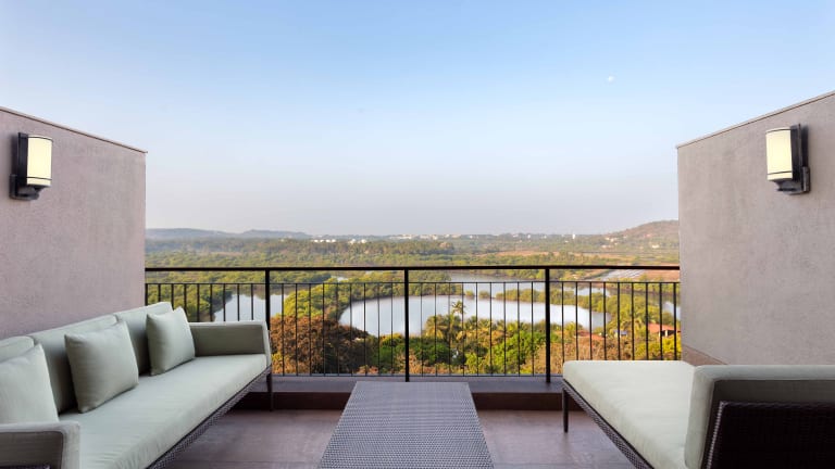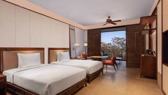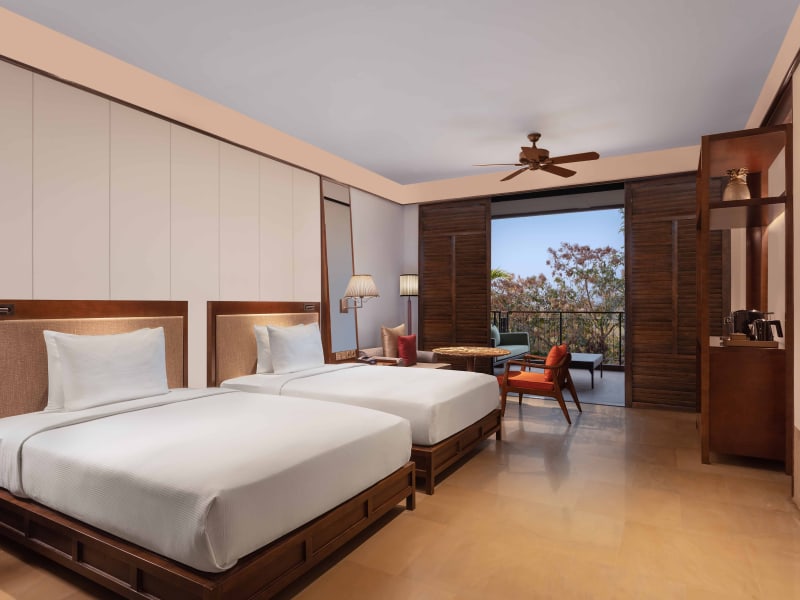 Die klimatisierten Zimmer des Hilton Goa Resort sind geräumig und verfügen über einen eigenen Sitzbereich sowie eine Terrasse. Jedes Zimmer ist mit einem Flachbild-Kabel-TV, Wasserkocher und einem eigenen Bad mit Dusche und kostenlosen Pflegeprodukten ausgestattet. Zimmer mit Whirlpool-Badewanne und eigenem Tauchbecken sind ebenfalls verfügbar. Familien- und Nichtraucherzimmer sind vorhanden.