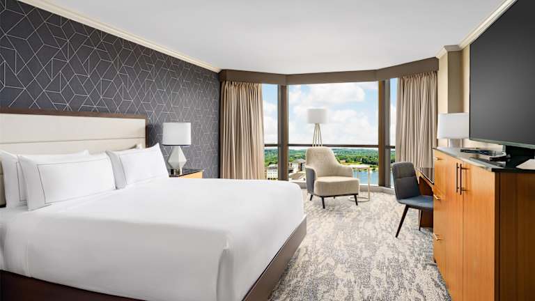 Das Hilton Hotel befindet sich im Viertel University City am See in Charlotte. Die ruhige Lage am Wasser bietet eine bequeme Nähe zum Einkaufszentrum The Shoppes at University Place mit über 80 Restaurants und Einkaufsmöglichkeiten. Beliebte Sehenswürdigkeiten wie der Lowe's Motor Speedway, das Mint Museum of Art und das Bank of America Stadium sind nur etwa 15 km entfernt. Der internationale Flughafen Charlotte - Douglas ist in ca. 25 km zu erreichen.