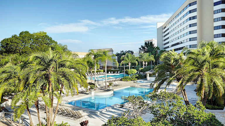 Das Hilton Hotel Orlando Lake Buena Vista liegt im Walt Disney World Resort, nur 2 Gehminuten vom Disney Springs entfernt. Die Umgebung bietet eine Vielzahl von Freizeitmöglichkeiten und Einkaufsmöglichkeiten. Die Entfernung zum Flughafen beträgt ca. 28 km, und der nächstgelegene Golfplatz befindet sich etwa 1.6 km entfernt.