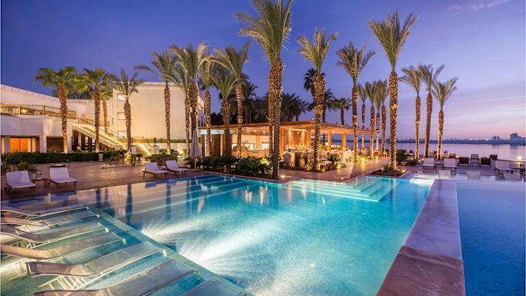 Das Hilton Luxor Resort & Spa bietet stilvolle Zimmer, ein wunderschönes Spa und zwei beeindruckende Infinity-Pools mit Blick auf den Nil. Die Gäste können sich auf ein gehobenes Ambiente und aufmerksamen Service freuen.