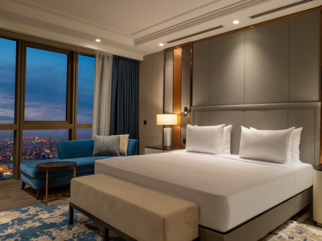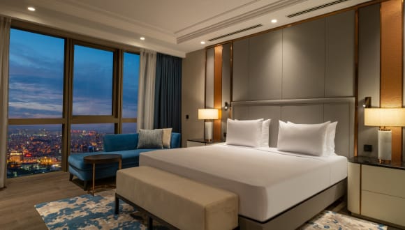 Die Zimmer im Hilton Mall of Istanbul sind klimatisiert und bieten ein angenehmes Raumklima. Sie verfügen über einen Balkon oder eine Terrasse mit Stadtblick und sind mit einem Doppelbett oder Kingsize-Bett sowie einem Schreibtisch ausgestattet. Zudem gibt es ein Bügelset, ein Telefon, einen Fernseher und kostenfreies Wifi. Familien- und Nichtraucherzimmer sind ebenfalls verfügbar.