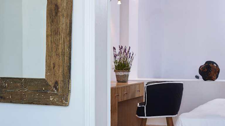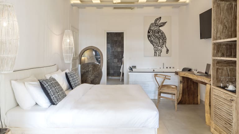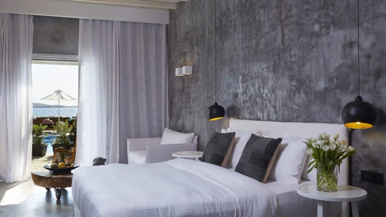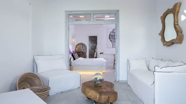 Die Zimmer und Suiten sind klimatisiert und verfügen über COCO-MAT Kingsize-Betten sowie ein behagliches Interieur. Jede Unterkunft ist mit einem Flachbild-TV, einem Minikühlschrank und einer eigenen Veranda ausgestattet. Einige Wohneinheiten bieten eine uneingeschränkte Aussicht auf die Ägäis, wobei die Sicht teilweise durch Wände oder Trennwände beeinträchtigt wird.