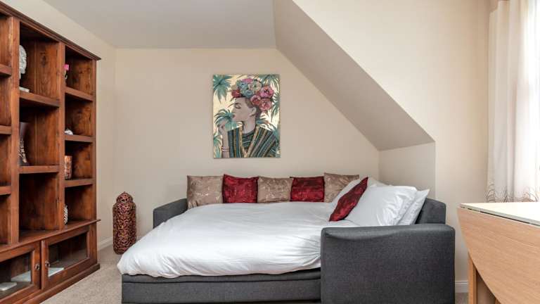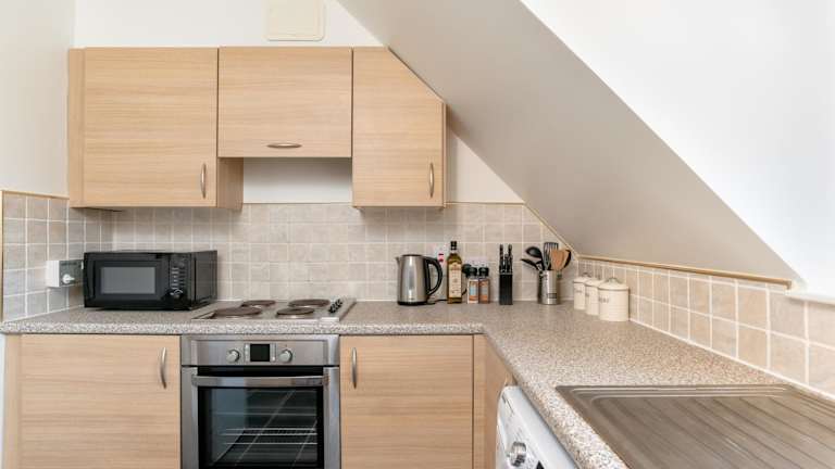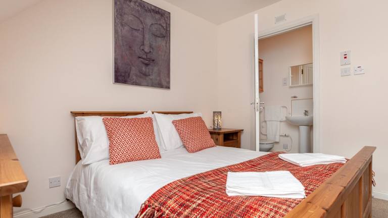 Die Ferienwohnung besteht aus 2 Schlafzimmern, einem Wohnzimmer und einer voll ausgestatteten Küche mit Kühlschrank und Wasserkocher. Es gibt 2 Badezimmer mit Dusche und kostenlosen Pflegeprodukten. Handtücher und Bettwäsche werden bereitgestellt.