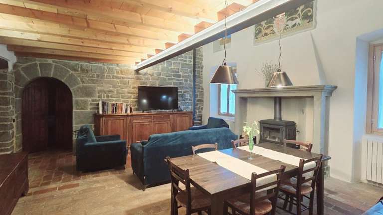 Die Zimmer im Historical House Medieval Abbey - Al Chiostro sind im Landhausstil eingerichtet und vermitteln eine gemütliche und einladende Atmosphäre. Die rustikalen Steinmauern und Holzbalkendecken verleihen den Zimmern einen besonderen Charme. Das Apartment verfügt über eine gut ausgestattete Küchenzeile mit einer Spülmaschine und einem Essbereich. Der Wohnbereich ist mit einem bequemen Schlafsofa, einem Kamin und einem Flachbild-TV ausgestattet. Kostenloses WLAN steht Ihnen ebenfalls zur Verfügung.