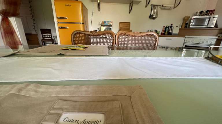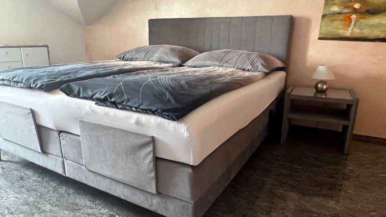 Die Ferienwohnung verfügt über zwei Schlafzimmer, eine Küche mit Kühlschrank und Geschirrspüler sowie zwei Badezimmer mit Whirlpool und Badewanne. Handtücher und Bettwäsche werden bereitgestellt.