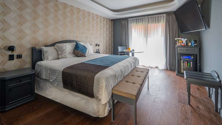 Die Zimmer sind mit einem Kleiderschrank, einem eigenen Badezimmer mit Dusche und kostenlosen Pflegeprodukten ausgestattet. Zudem verfügen die Gästezimmer über einen Flachbild-TV, Klimaanlage und einen Safe. Bestimmte Zimmer haben zusätzlich eine Terrasse.